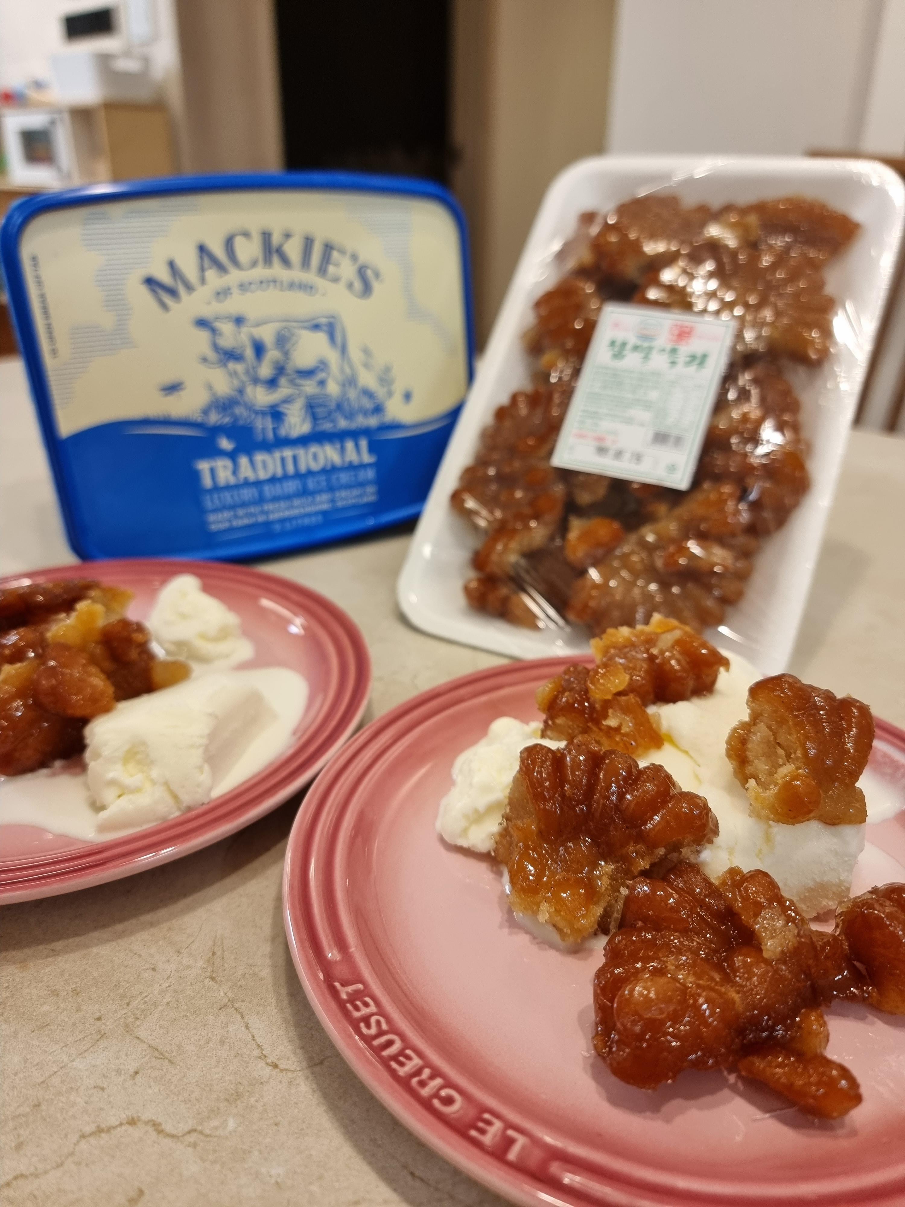 그냥 먹어도 맛있지만, 아이스크림과 같이 차갑게 해서 먹어도 맛있어요.