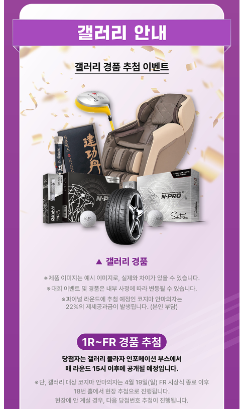 가장 좋은 상품인 코지마 안마의자만 FR 시상식 종료 후 18번 홀에서 현장 추첨으로 진행됩니다.