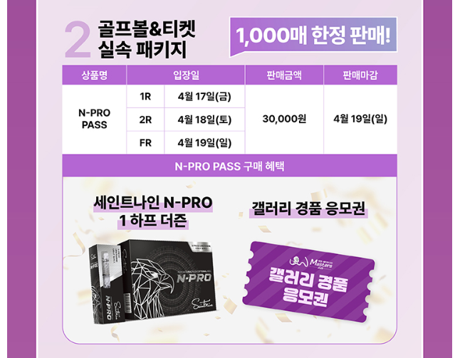 1,000매 한정 판매하는 골프볼 & 티켓 패키지도 있습니다.
