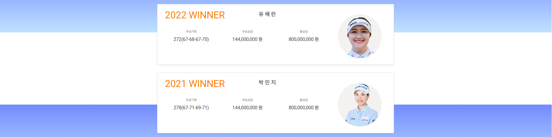 11회인 2021년부터 우승자는 박민지, 유해란, 최은우 2연패이며, 방신실은 전년도 우승자 입니다.