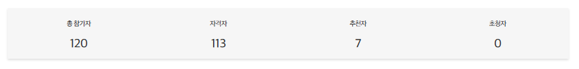 이번 대회에는 추천자 7명, 자격자 113명, 총 120명이 참가합니다.