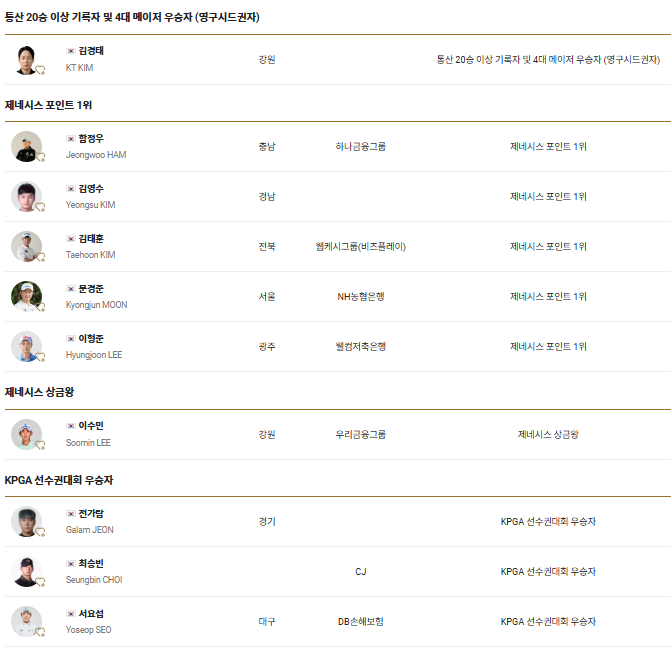 영구시드권자 김경태 선수를 비롯해서