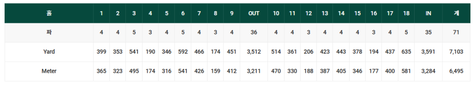 총 전장은 6,495 미터, 7,103 야드 입니다.