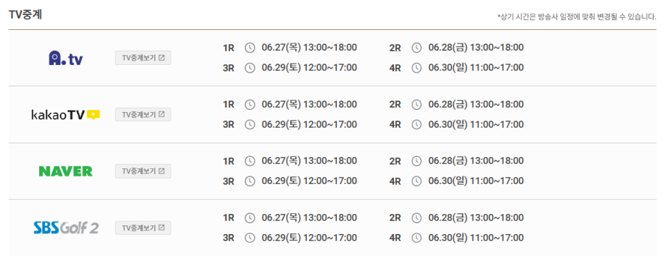 중계방송사 및 방송 시간 입니다.
