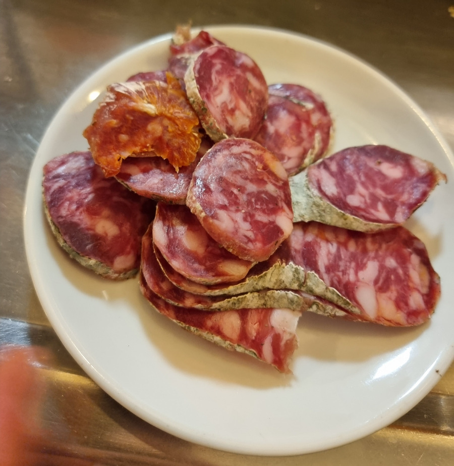 초리소는 스페인 소세지 느낌의 햄으로 다진 돼지고기에 소금, 후추, 피망, 양파 등을 섞어 건조 혹은 훈연해서 먹는 소세지입니다.