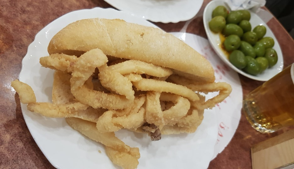 마드리드에 가신다면 플라자 마요르 옆에 있는 La Campara에서 오징어튀김 샌드위치인 보카디요 칼라마레스 (Bocadillo Calamares)를 맥주와 드셔보시는걸 추천 드립니다.