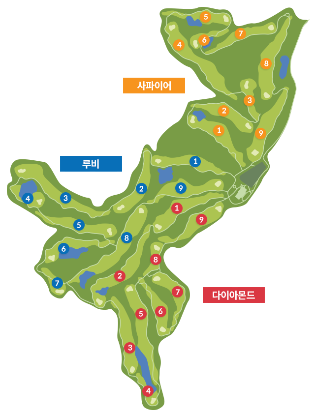 사파이어, 루비, 다이아몬드 총 3개의 9홀 코스로 구성되어 있고,이번에는 루비와 사파이어 코스를 라운딩 했습니다.