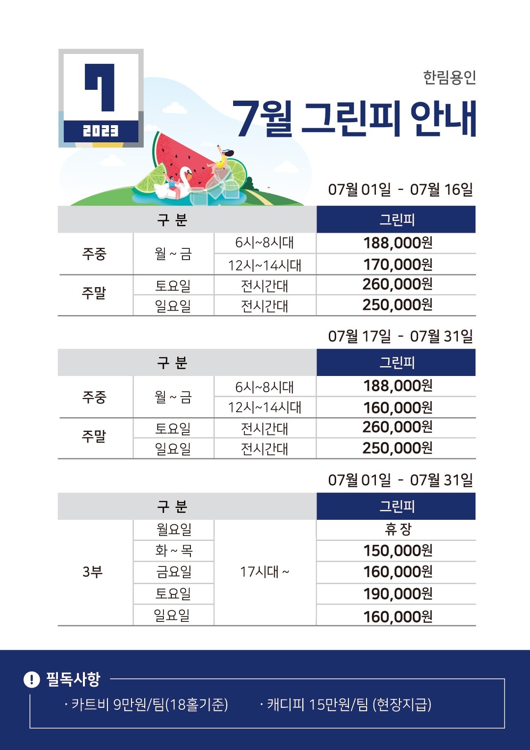 한림용인CC의 7월 그린피 입니다.
