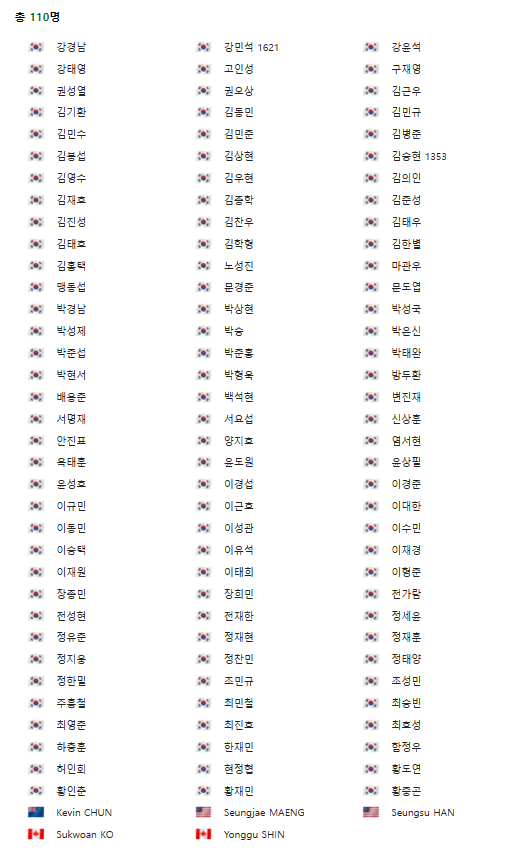 이번 대회에는 총 110명의 선수가 참가합니다.