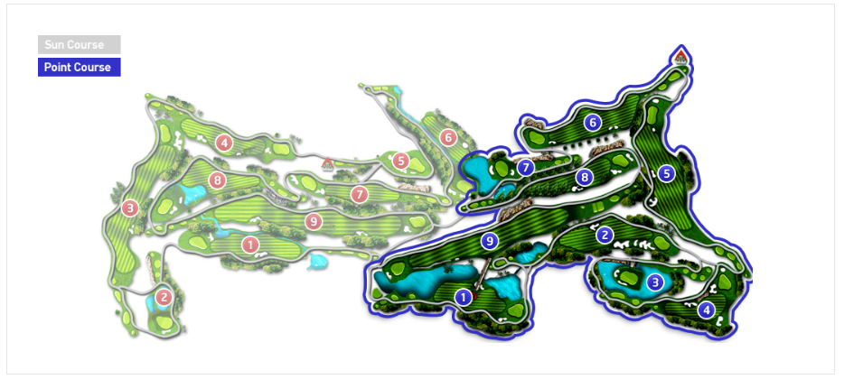 경기코스는 SUN코스와 POINT 코스이며, 총 전장은 6,144미터, 6,721야드 입니다.