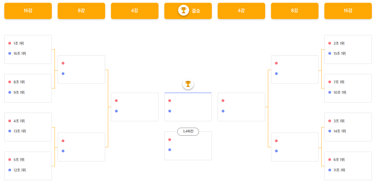 16강, 8강, 4강, 결승, 4번의 매치를 승리하면 우승하는 방식입니다.