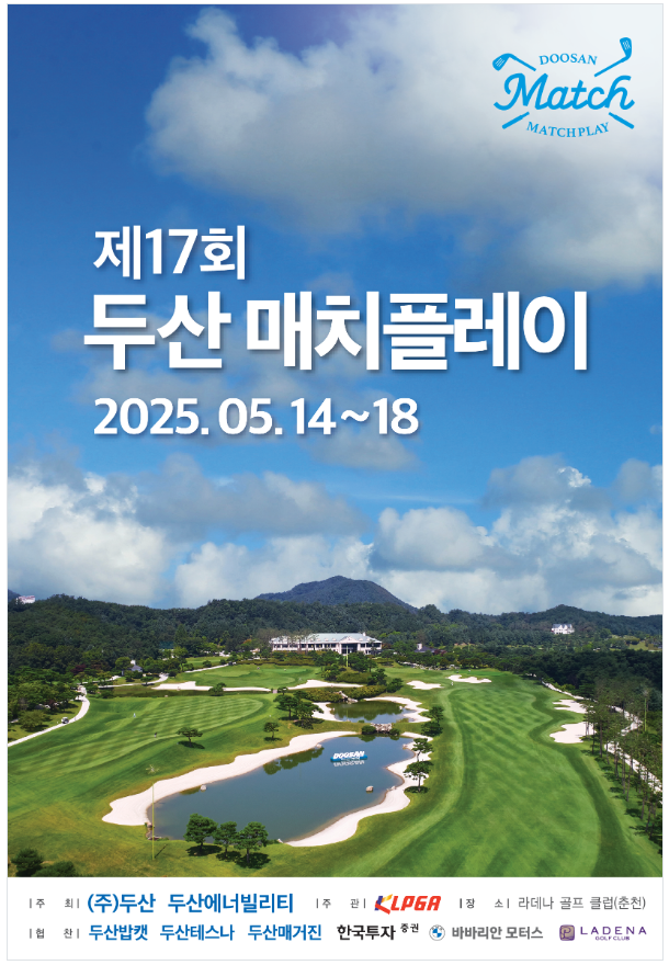 총상금 10억 원, 우승상금 2.5억 원에 달하는 제17회 두산매치플레이 KLPGA 골프 대회가 강원도 춘천에 위치한 라데나 컨트리클럽에서 2025년 5월 14일(수)부터 18일(일)까지 개최됩니다.