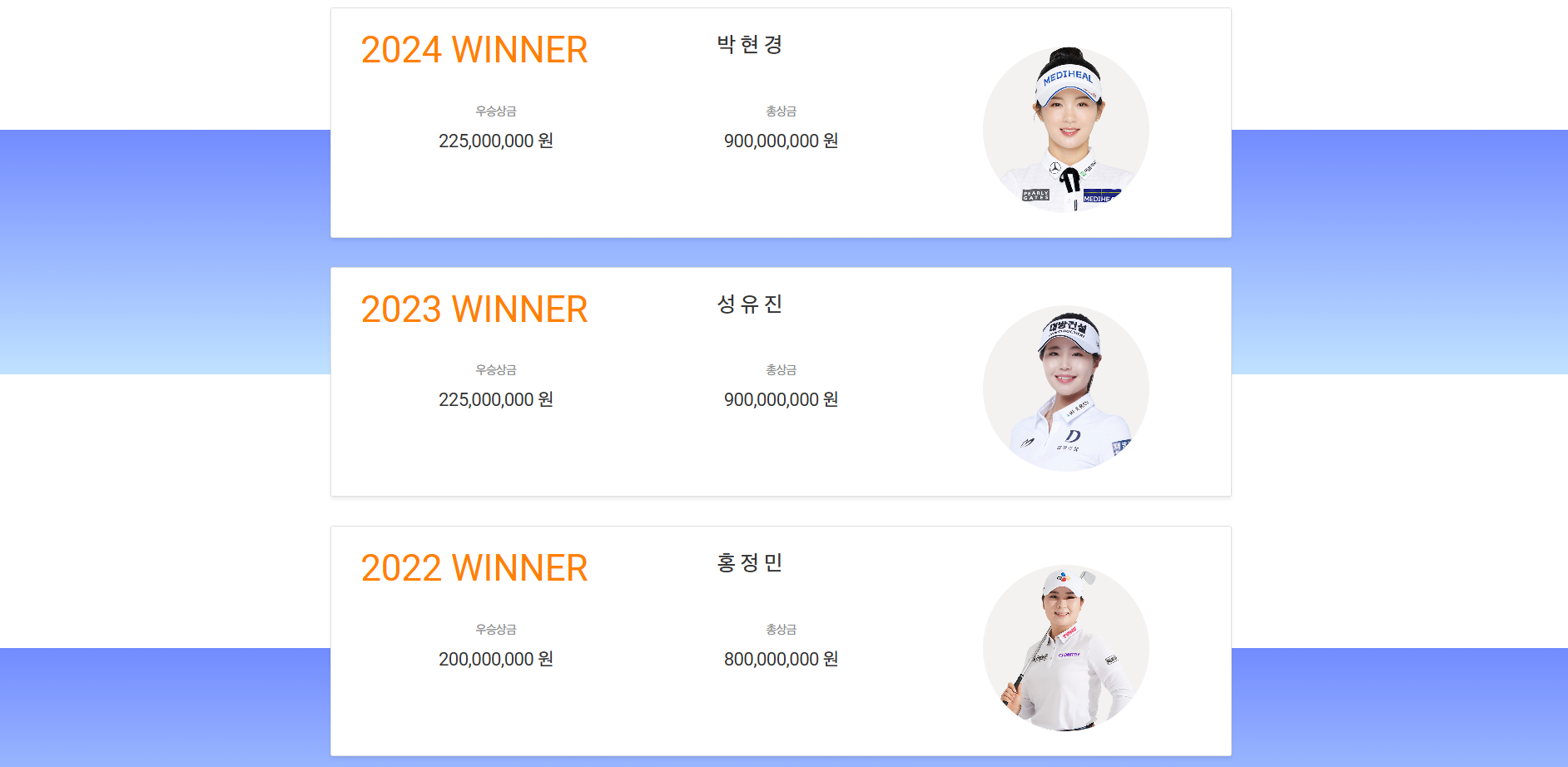 2022년 우승자는 홍정민 선수, 2023년 우승자는 성유진 선수,