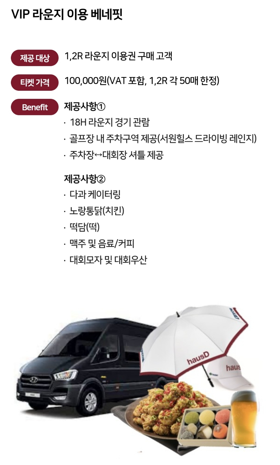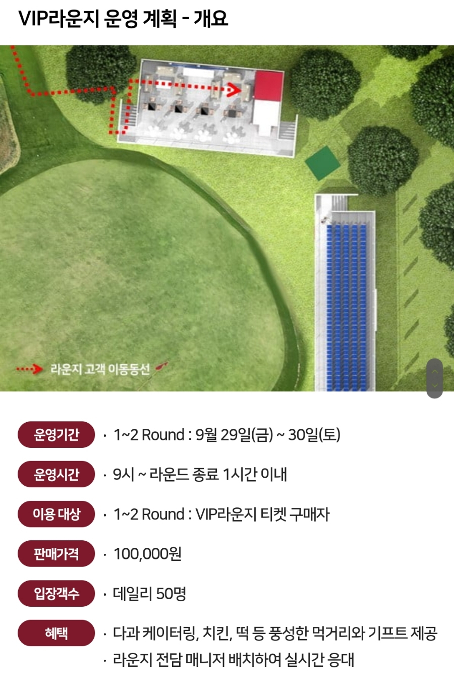 VIP 라운지 입장권은 1라운드와 2라운드만 운영하며, 일 10만원 입니다.