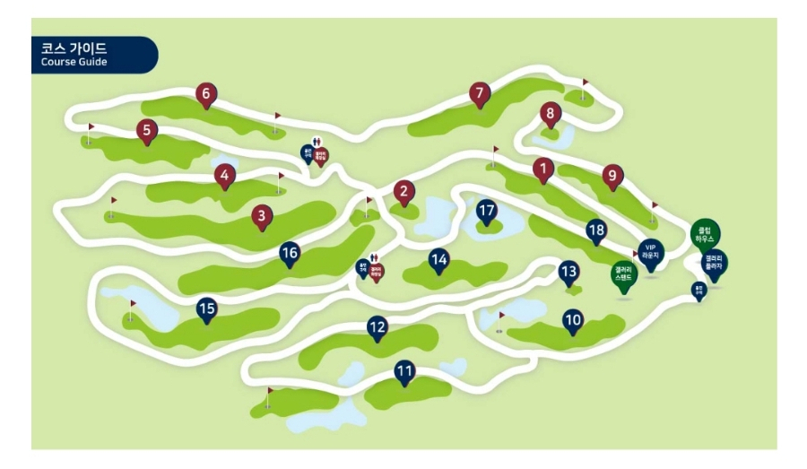 경기코스는 밸리코스와 서원코스인데, 총 전장은 본선 기준 6,204미터, 6,738 야드 입니다.