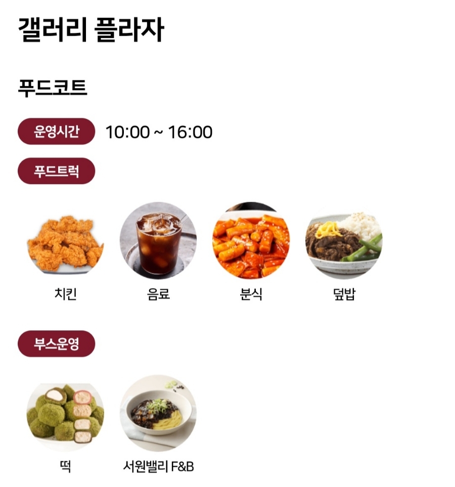 갤러리 플라자는 10시부터 오후 4시까지 운영되고, 푸드트럭이나 부스 운영 등 먹고 마실만한 것들이 준비되어 있습니다.