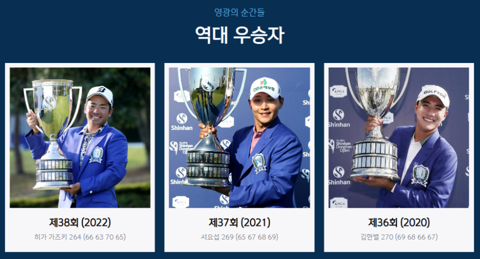 역대 우승자는 마지막에 열린 작년 대회는 일본의 히가 가즈키이며, 그 이전에 2년은 서요섭, 김한별 선수였습니다. 최초 우승자는 1981년 한장상 프로네요.