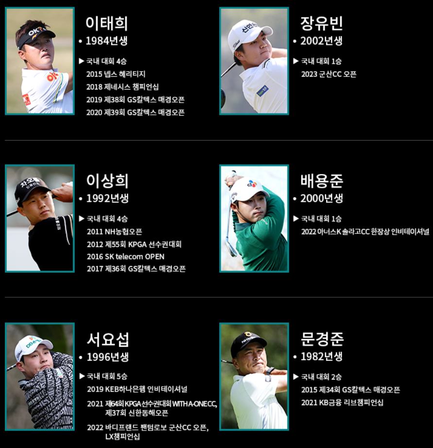 디펜딩챔피언 정찬민 선수를 비롯해서 김비오, 박상현, 허인회, 이태희, 장유빈, 이상희, 배용준, 서요섭, 문경준 등 총 144명의 선수가 출전합니다.