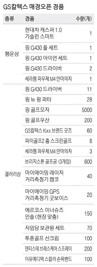 행운상 경품으로는 현대차 캐스퍼 1.0 가솔린 스마트를 비롯하여, 핑 G430 풀세트, 아이언세트, 드라이버 및 세라젬 파우제 M4 안마의자 등 다양합니다. 갤러리상으로 핑 모자까지 하면 총 6천 여명에게 경품이 돌아갑니다.