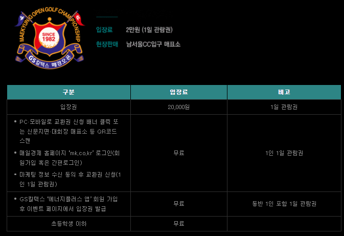 제43회 GS칼텍스 매경오픈 KPGA 골프 대회 in 남서울 CC, 주차, 무료 티켓