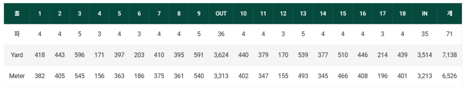 A-ONE CC의 남-서코스 합쳐서, 파71 코스이고, 전장은 6,526미터, 7,138 야드입니다.