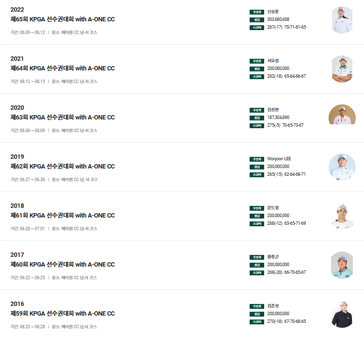 대회명 : 제66회 KPGA 선수권대회 WITH A-ONE CC
