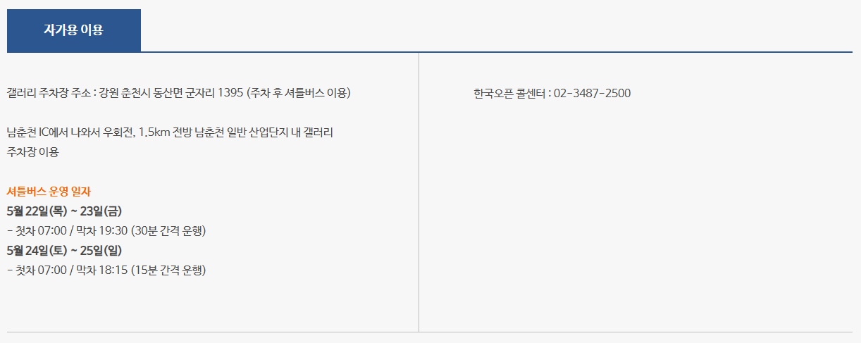 갤러리 주차장은 강원 춘천시 동산면 군자리 1395 입니다.