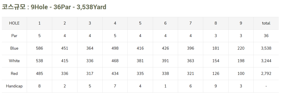 9홀로 구성된 골프장으로 18홀 플레이하려면, 9홀을 두번 플레이하는 방식입니다.