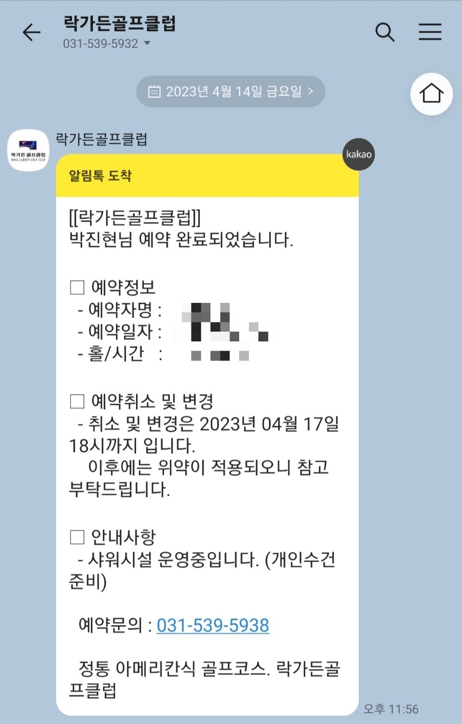 동시에 카톡으로도 예약확인이 오니 같이 확인 가능합니다.