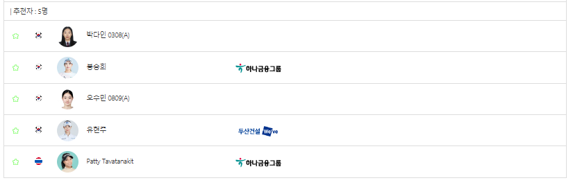 그 외 하나금융그룹에 포함된 리디아고나 이민지 선수, 그리고 외국 선수들이 포함되어 있습니다.