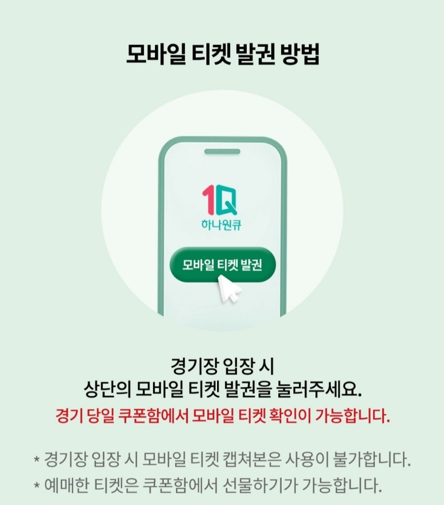 예매 완료한 티켓을 대회 당일 모바일 티켓으로 발권하면 됩니다.