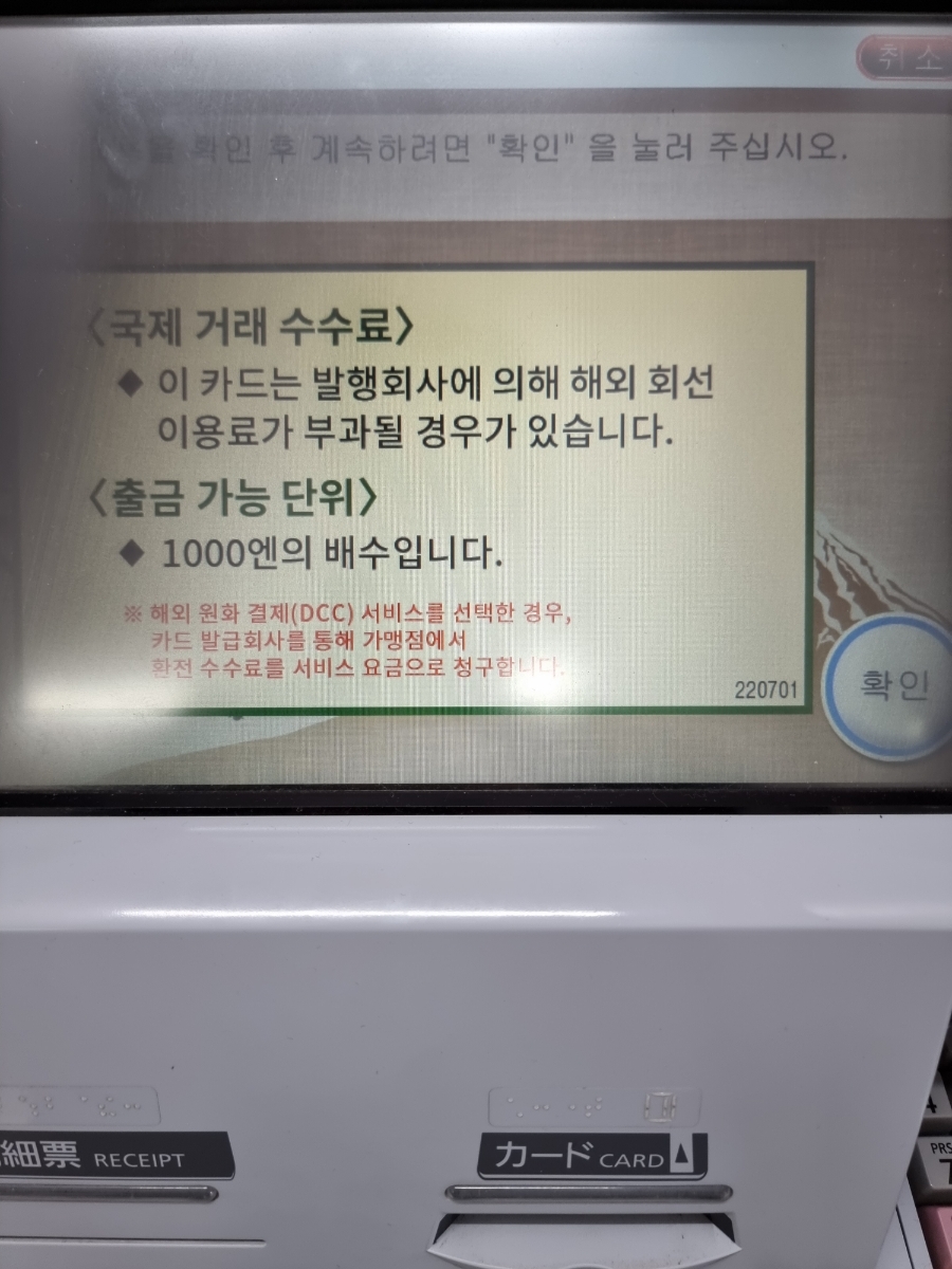 일본 현지 엔화 인출 방법 (세븐일레븐 ATM)