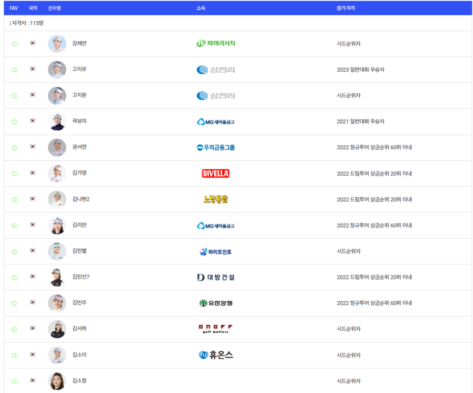 박민지, 박보겸, 박현경, 박결 선수도 참가하네요.