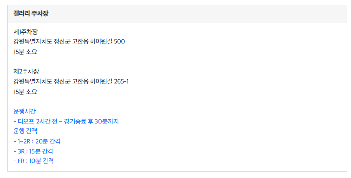 제2주차장 : 강원특별자치도 정선군 고한읍 하이원길 265-1