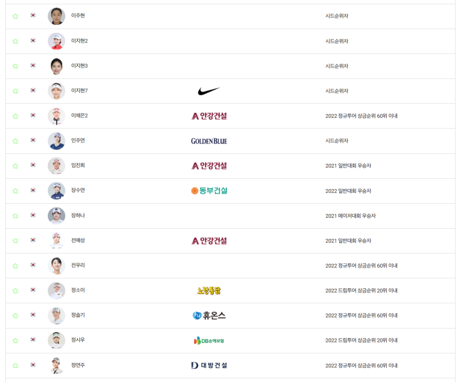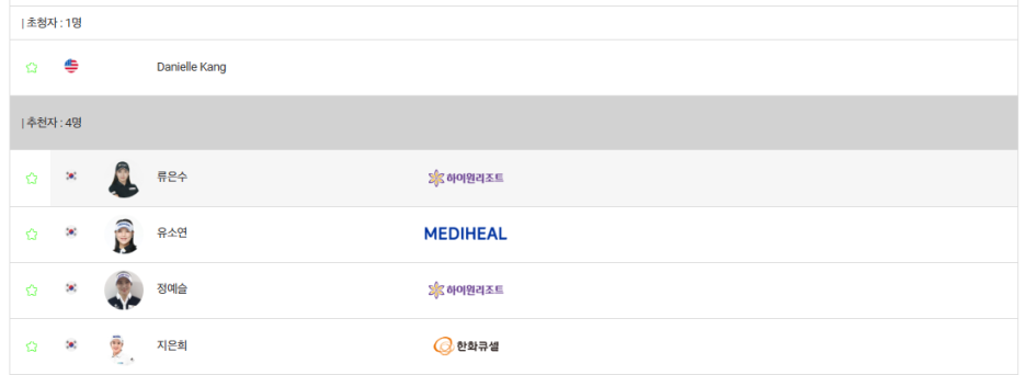 초청선수로는 LPGA에서 활약중인 다니엘강, 유소연, 지은희 선수가 초청되어 참여합니다.
