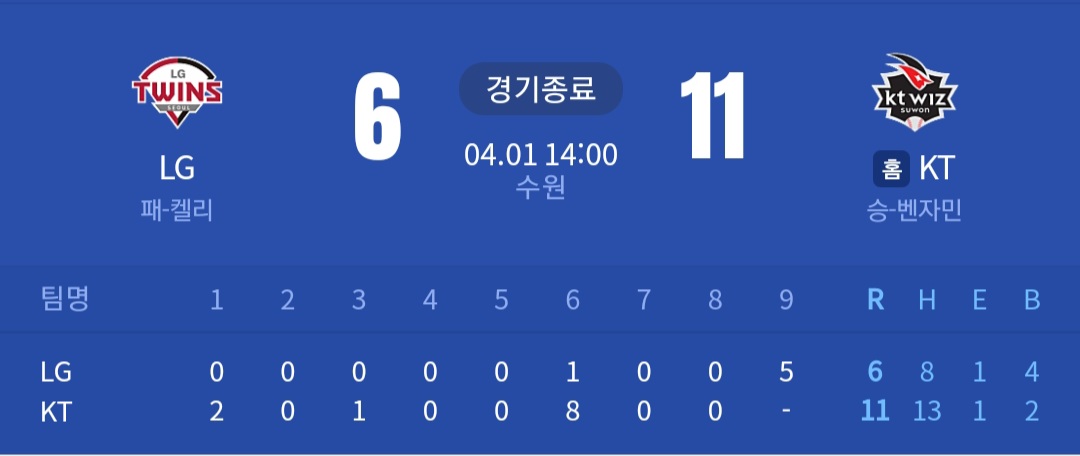2023년 4월 1일 KBO 한국프로야구 경기결과