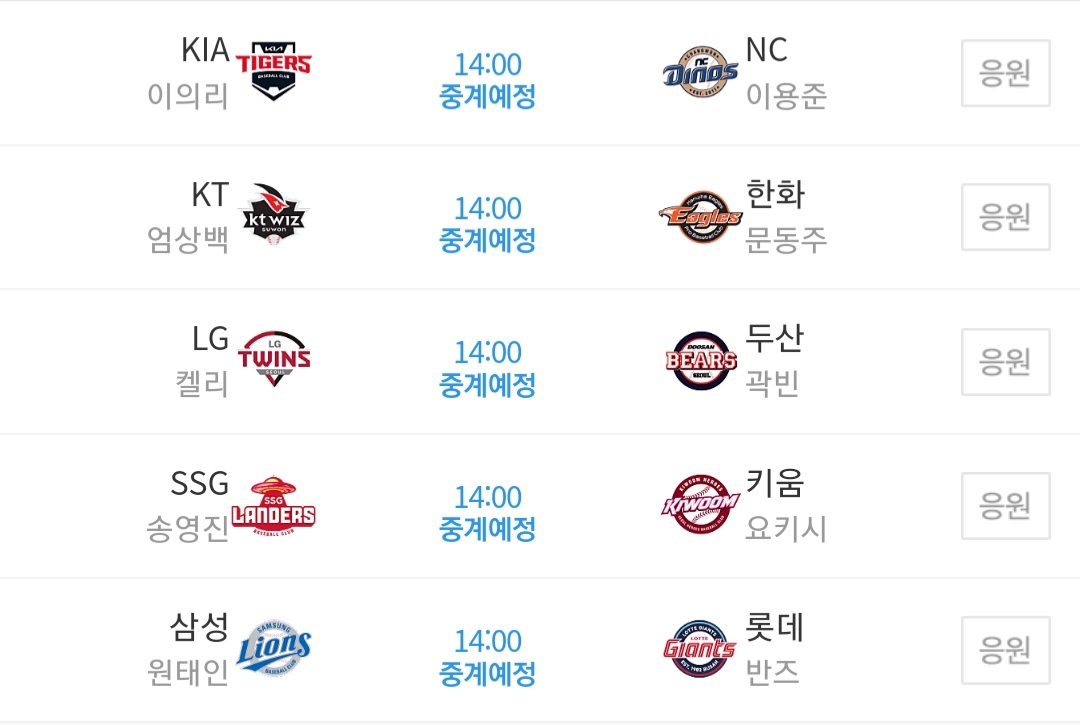 2023년 5월 7일 KBO 한국프로야구 경기일정 및 중계방송