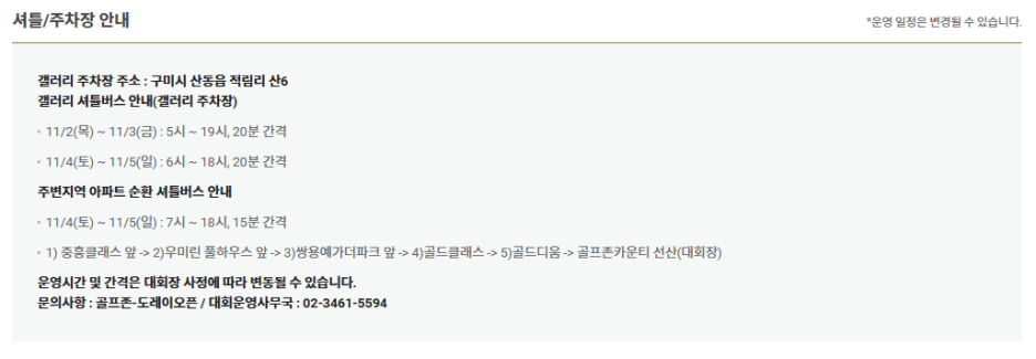 대회 기간에는 골프존카운티 선산 컨트리클럽 내 주차가 불가합니다.