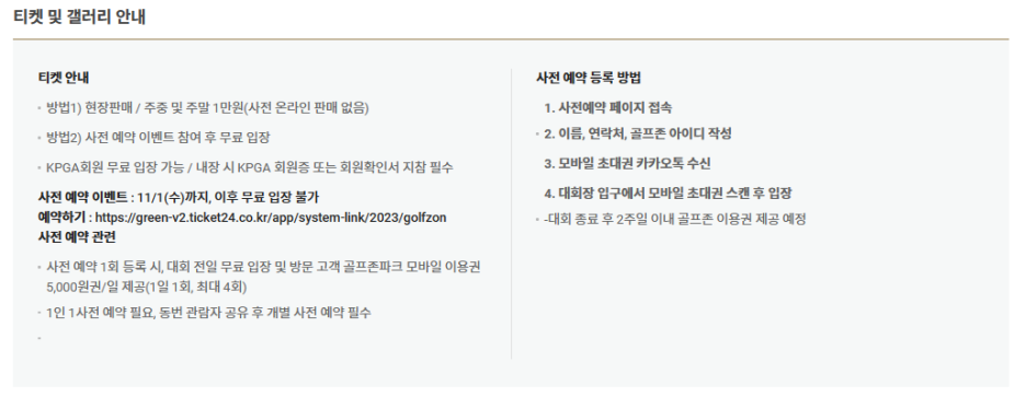 하지만, KPGA 회원은 무료이며, 또한, 사전 예약 이벤트 참여 후 무료 입장이 가능한데 11/1일까지 였습니다.