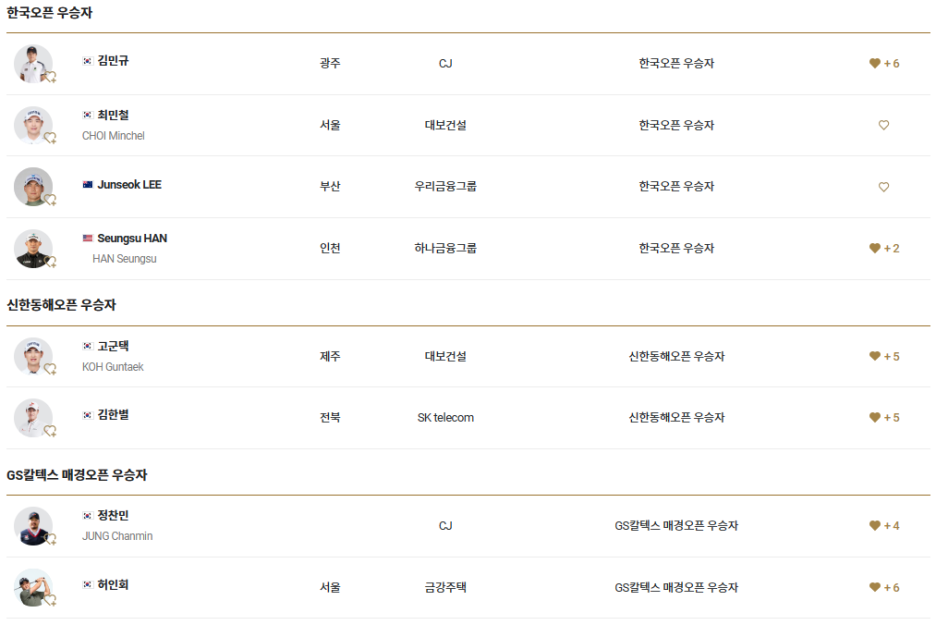 한국오픈 우승자 자격으로 김민규, 최민철, 이준석, 한승수,