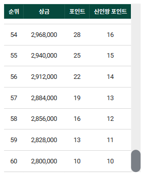 60위는 280만원의 상금이 있습니다.