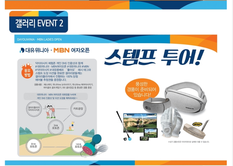 갤러리 이벤트로는 닥터마사지 파크골프 마스터즈 대회 및 스템프 투어 등이 있습니다.