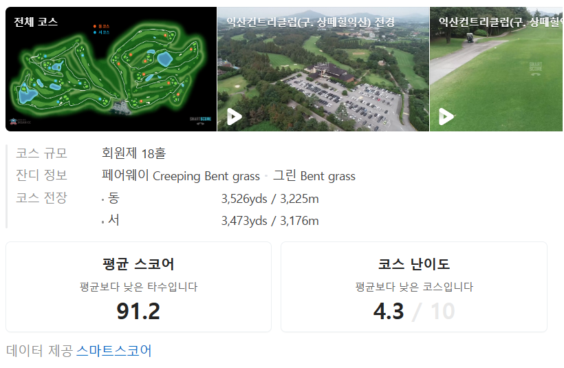 대회장소 : 익산CC / 동(OUT), 서(IN)