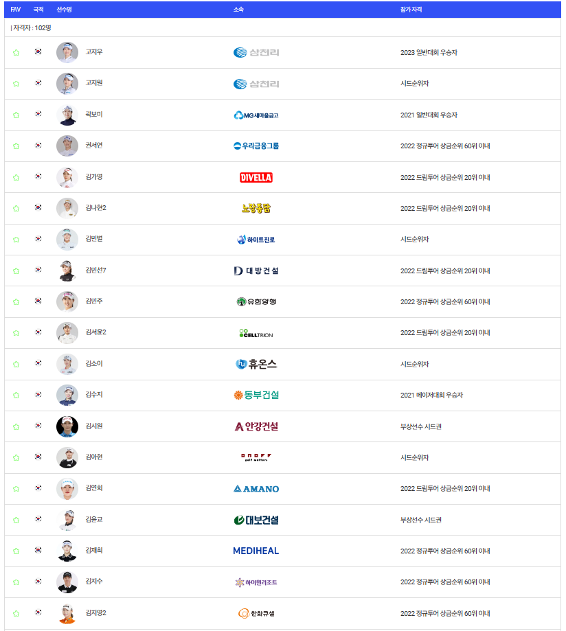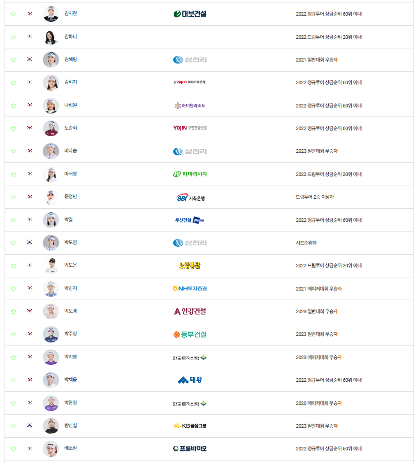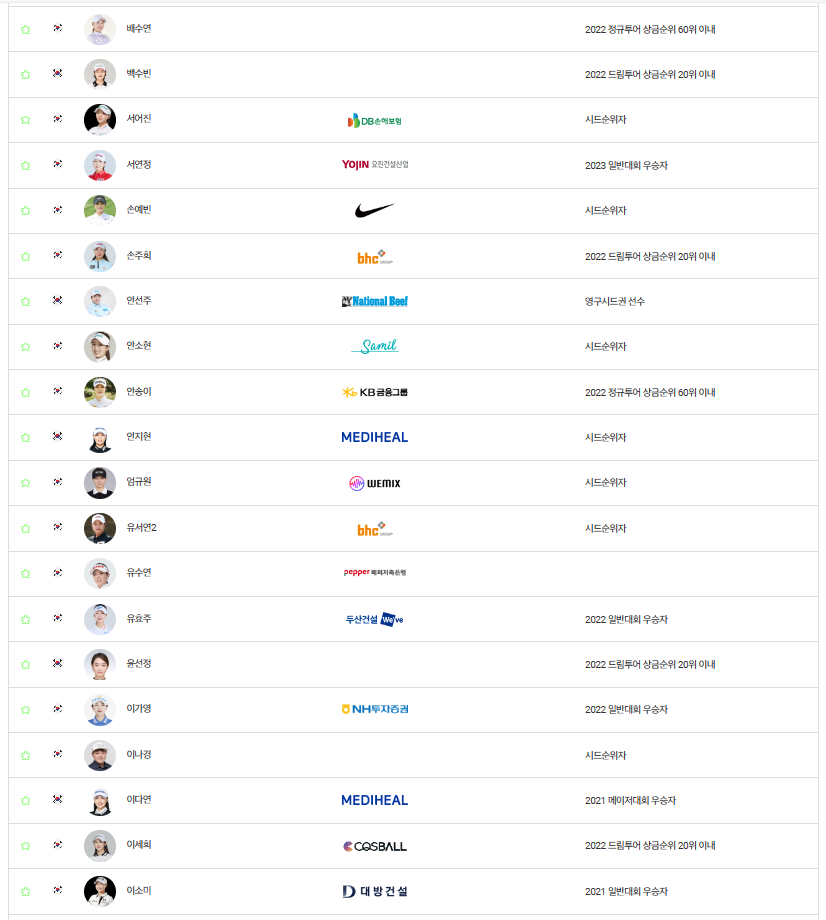 마다솜, 박결, 박민지, 박보겸, 박주영, 박현경, 방신실 선수도 참가합니다.