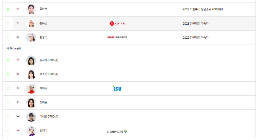 그 외 2023년도 및 2022년도 우승자인 황유민, 황정미 선수도 참고합니다.