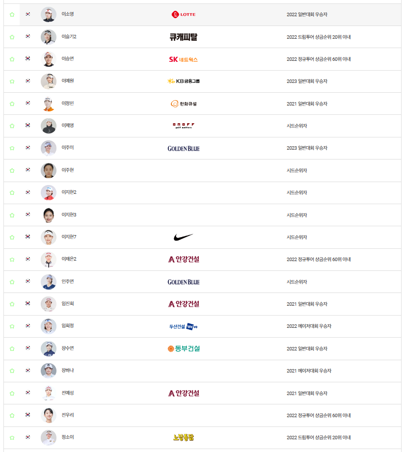 전년도 우승자인 이가영 선수를 비롯해서, 그 외에 서연정, 유효주, 이다연, 이소미 선수도 참가합니다.