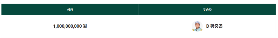 대회상금 : 총 상금 10억원 (우승상금 2억원)