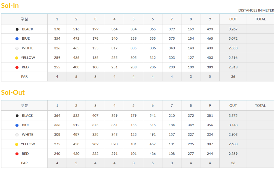 솔코스 기준 BLACK TEE는 6,642미터 입니다.