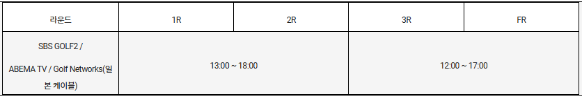 방송 : SBS Golf 2, 아베마 TV, Golf Networks (일본 케이블)