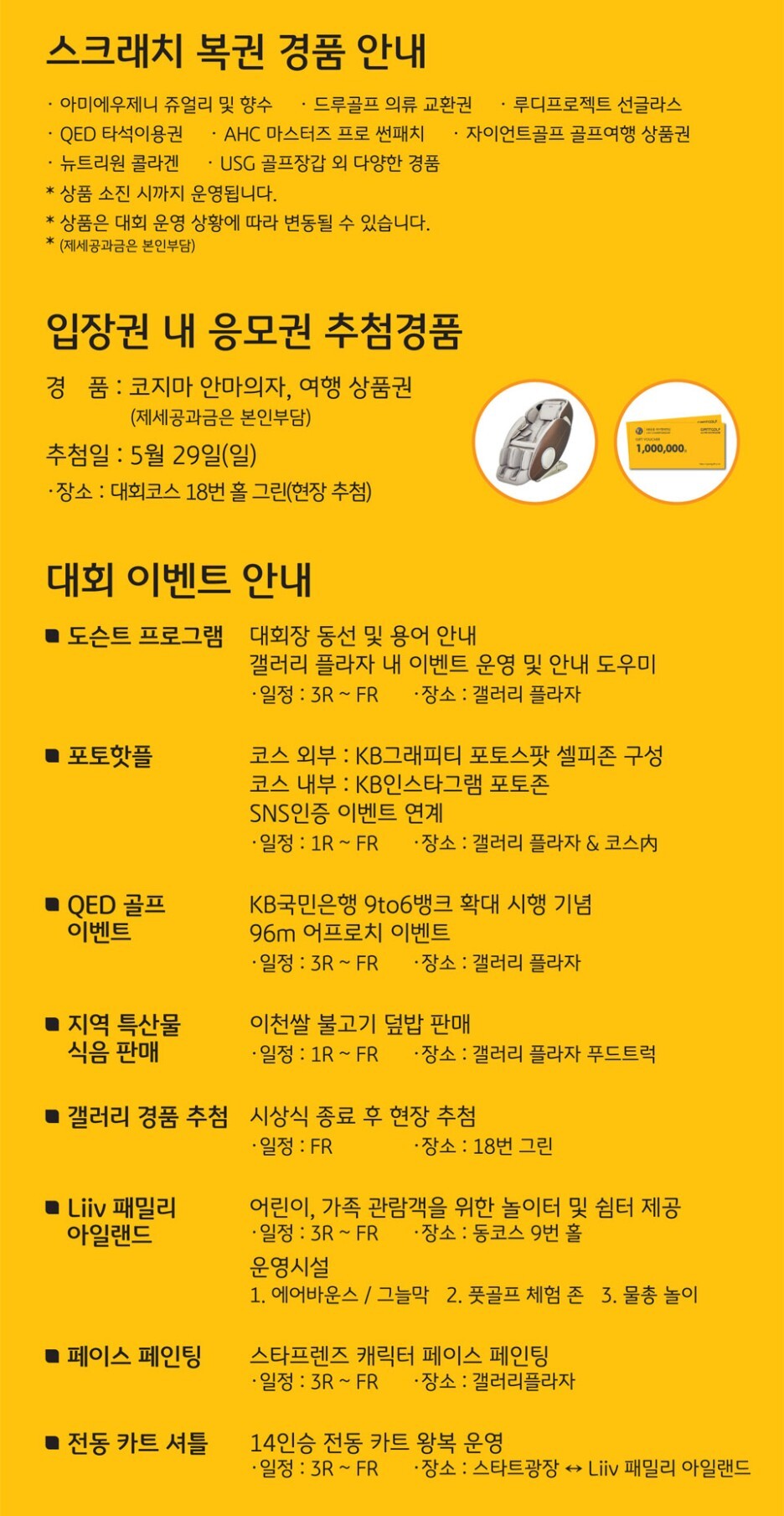 추첨일은 5/29일 18번 홀 그린에서 진행한다고 합니다.